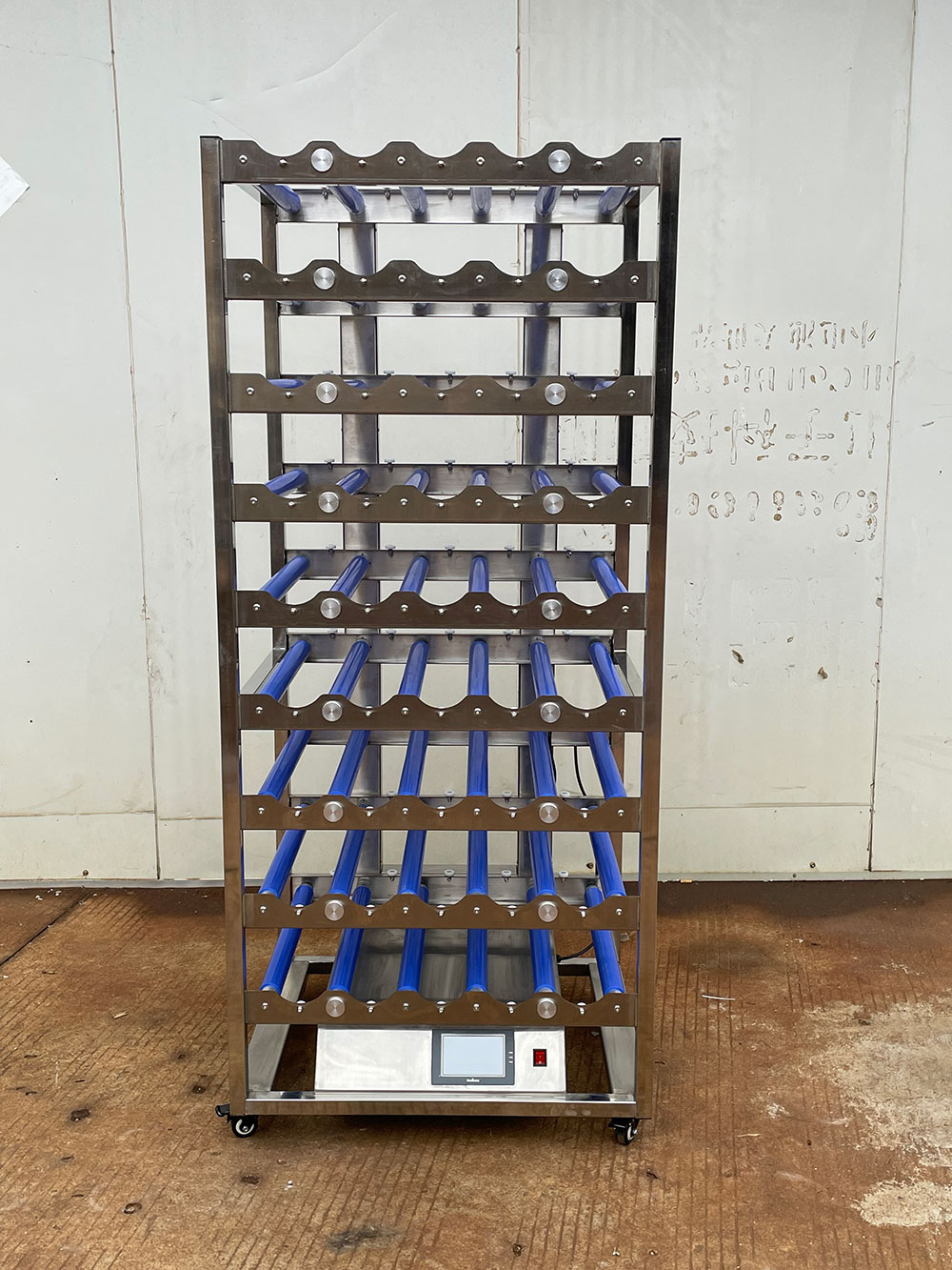JC-GPJ-50-2L恒温细胞滚瓶机是一款大型恒温细胞滚瓶机,可同时最高支持50个2000ml瓶子(直径φ120/130×500mm长规格)进行滚轴,整体采用304不锈钢机体,无油轴承,独特外观设计结构,适合客户后期放入恒温箱中,有利于风道循环均匀,设备外形尺寸为760*650*1980MM左右(含脚轮),滚瓶机/转瓶机采用优化设计,运用新技术、新材料及相应的先进生产设备制造而成,产品具有外形美观、重量轻、移动方便、操作简单及转速稳定、准确、可靠等优点;是科研单位、实验室、企业、学校等单位用于生物制品的生产及研究的理想首选设备。