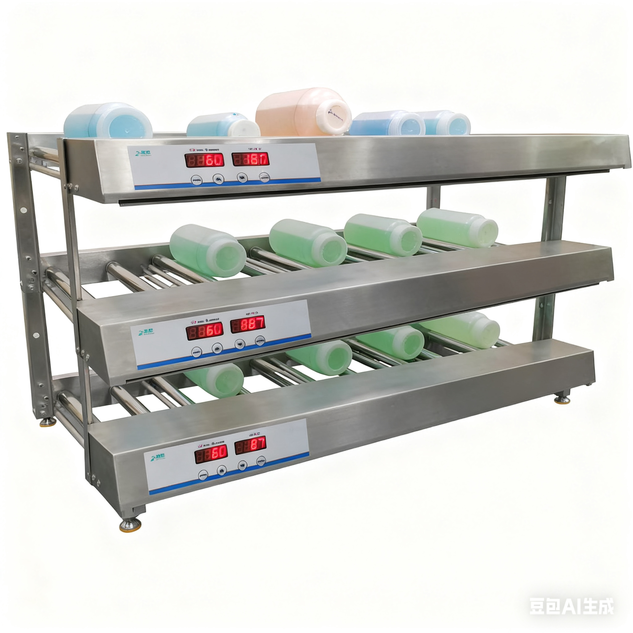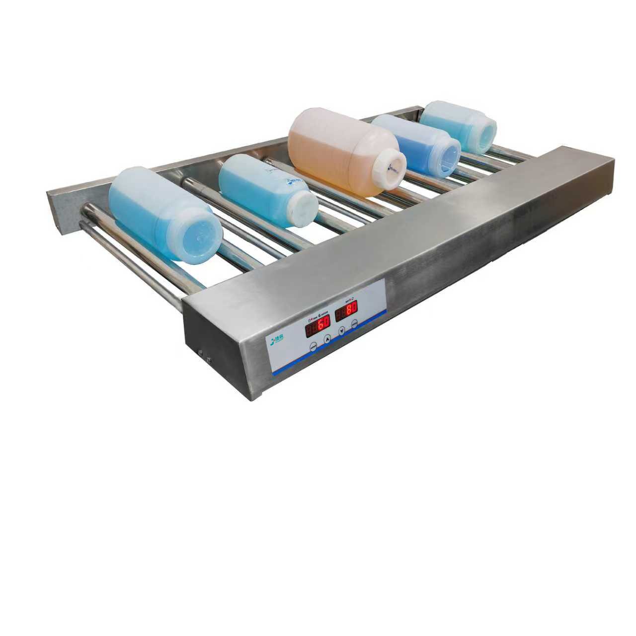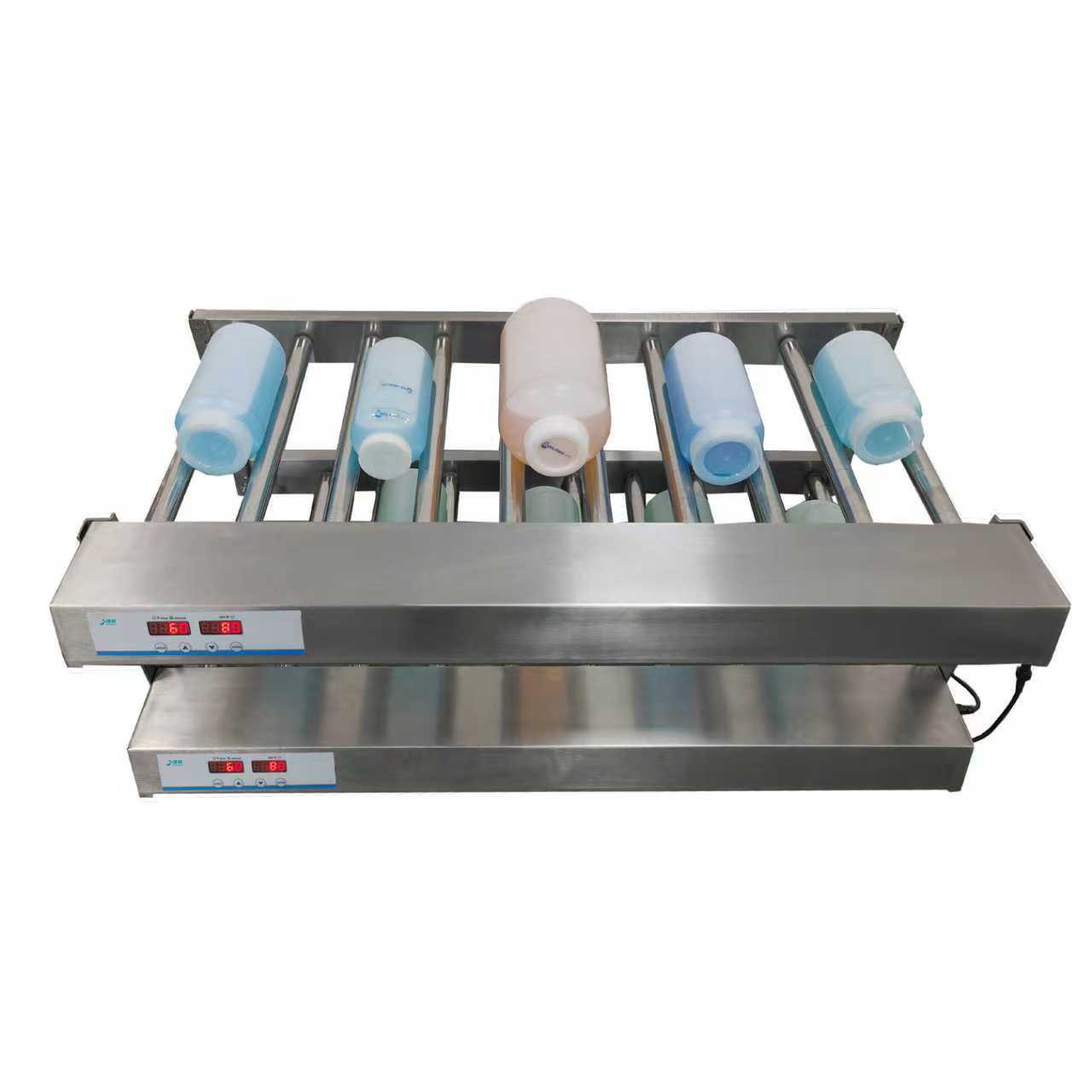 JRB-SL多层培养箱滚瓶机是捷宸多个中型瓶子滚轴需求而研发的一款,由用户定制需求而来,设备自身采用304不锈钢设计,防潮防水,支持9-27个5L瓶位同时工作,分为单纯J-RB-SL-10(单层9瓶位)、J-RB-SL-20(双层18瓶位)、J-RB-SL-30(三层27瓶位),非常适合作为大容量实验室菌群培养(贴壁低速培养5-60转),也可以用于工业涂料熟化(50-900转),可根据用户需求进行不同的设计调配!同时在载重方面,目前这款是捷宸载重中最为出色的一款,单层载重47kg、双层95kg、三层143kg!设备也支持定时哦!