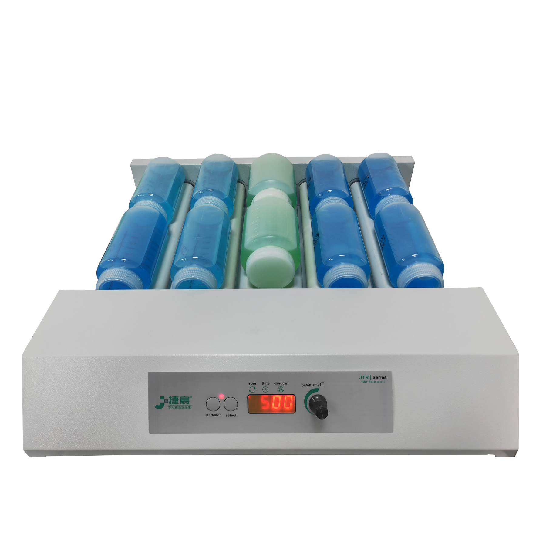 JTR-10DH滚轴混匀仪是捷宸开发的一款10轴型滚轴混匀仪,10DH作为捷宸DH罐磨机系列目前最多轴的一款,其自身运营0.5-10L多容量适配,同时轴数的提高使得可放置的瓶子更多,设备支持99h59m定时,支持定时换向,最大载重12kg,DH系列目前共开发了共5款,为2/4/6/8/10DH共5款,我们支持产品定制化设计,可为不同的滚轴需求进行量身定制化服务!